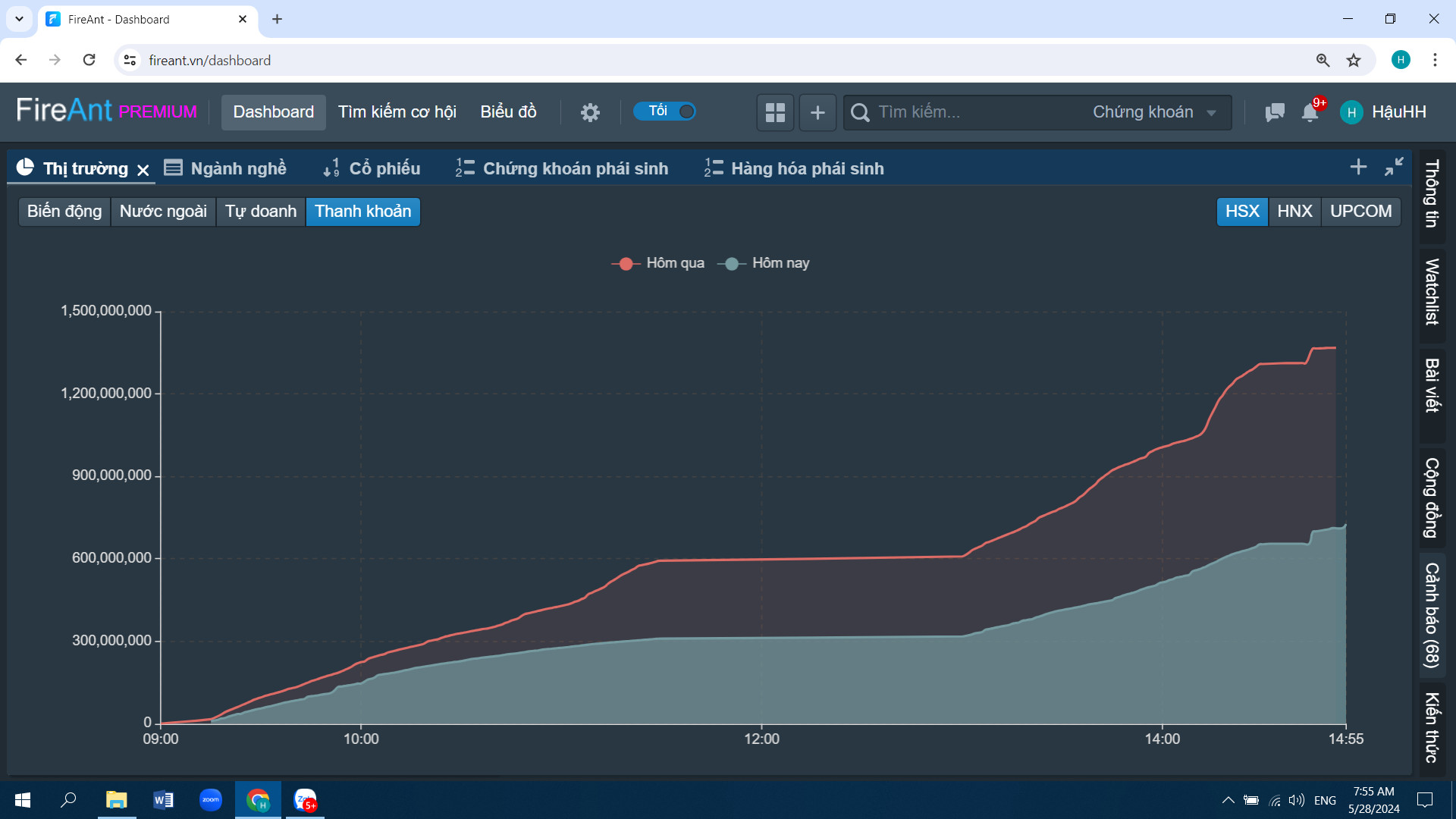 – Thị trường phiên ngày 27 tháng 05 giao dịch giằng co quyết liệt giữa bên mua và bên bán quanh mốc ema 20, dòng tiền lan tỏa tuy thị trường tăng điểm không quá lớn nhưng lại giúp nhiều cổ phiếu tăng giá tốt. Khối ngoại tiếp tục bán ròng mạnh với nhiều phiên liên tiếp bán ròng trên 500 tỷ, có phiên gần 2 nghìn tỷ tập trung vào các cổ phiếu vốn hóa lớn phần nào đã cản bước tăng của thị trường.
