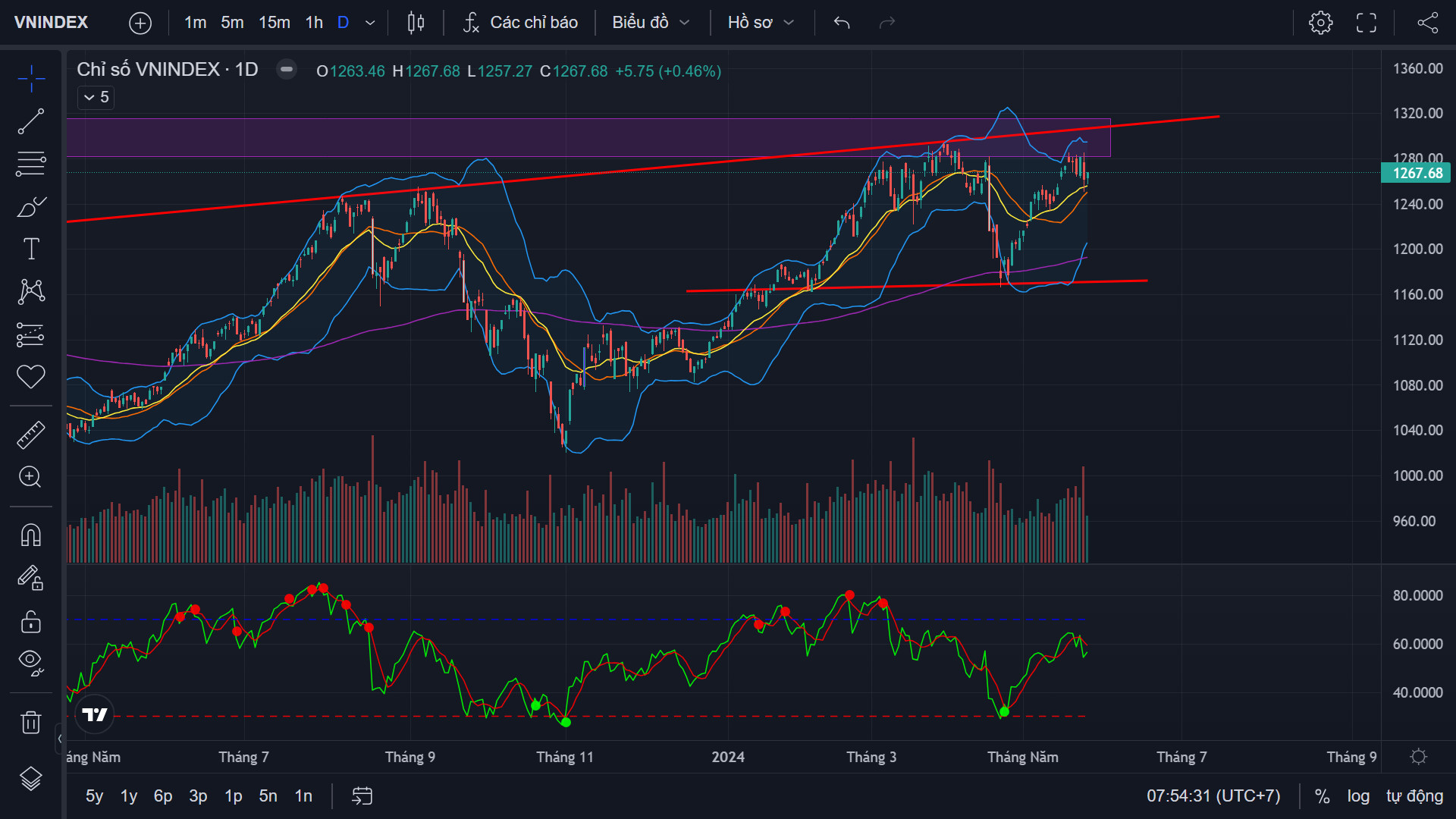 Chỉ số sau các phiên biến động mạnh sẽ là các biên biến động biên độ hẹp, sw trước khi có xu hướng mới.