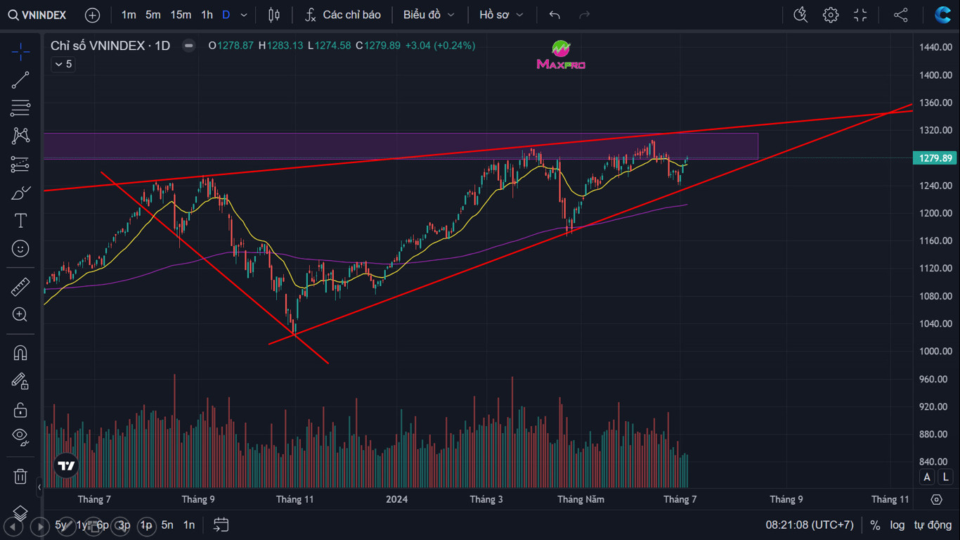 – Thị trường bước vào vùng kháng cự nên khả năng thị trường sẽ có nhiều phiên rung lắc để hấp thụ cổ phiếu cũng như hút dòng tiền tham gia thị trường.