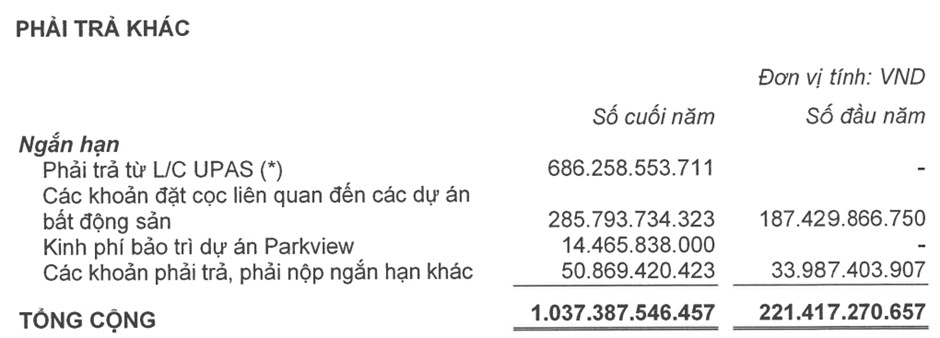 – Người mua trả tiền trước ngắn hạn tại thời điểm 31/12/2023 là 221 tỷ, giảm 666 tỷ so với năm 2022 (tương ứng 75,06%), do đã bàn giao hết dự án Parkview cho người mua.
