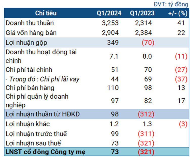 Chi phí bán hàng và chi phí quản lý doanh nghiệp ghi nhận lần lượt 110 tỷ đồng và 97 tỷ đồng, tăng 13% và 17% so với cùng kỳ. Việc các chi phí neo cao đã khiến bào mòn lợi nhuận của doanh nghiệp, khiến lợi nhuận ròng còn 73 tỷ đồng và đạt 10% kế hoạch đề ra. Tuy nhiên, đây cũng là mức lãi lớn so với quý cùng kỳ, lỗ tới 312 tỷ đồng