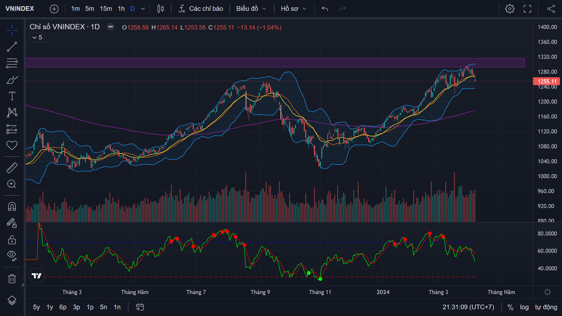 – Thị trường bước vào giai đoạn rung lắc mạnh. Áp lực giảm điểm lên cao khi Vni đã đánh mất mốc Ema 20