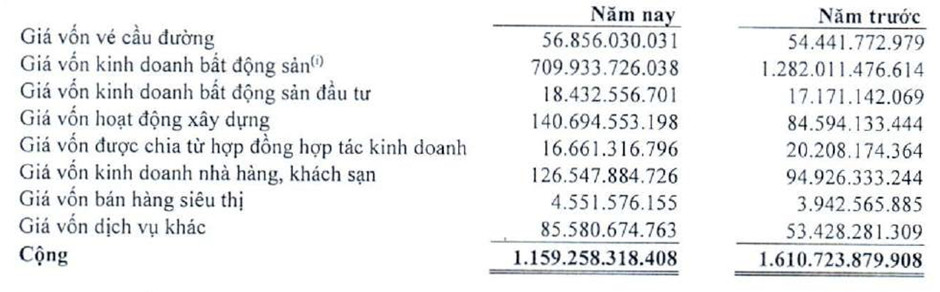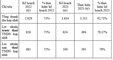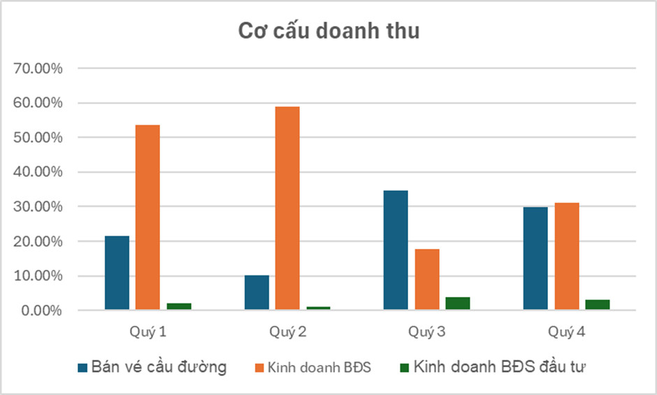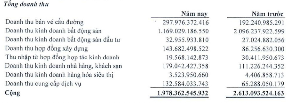 Doanh thu lũy kế năm 2023 mảng kinh doanh bất động sản là 718 tỷ, chỉ đạt 90% kế hoạch đề ra, còn mảng bán vé cầu đường đạt 295 tỷ, chỉ đạt 95% so với kế hoạch đề ra.