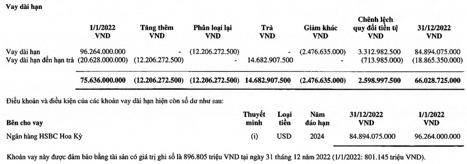 b/ Nợ dài hạn: của Công ty tại thời điểm 31/12/2022 là 358 tỷ đồng, chiếm 0,74% tổng nguồn vốn. Giảm 56 tỷ so với năm 2021 (tương ứng 13,57%). Nợ dài hạn của Công ty chủ yếu là thuế thu nhập hoãn lại.