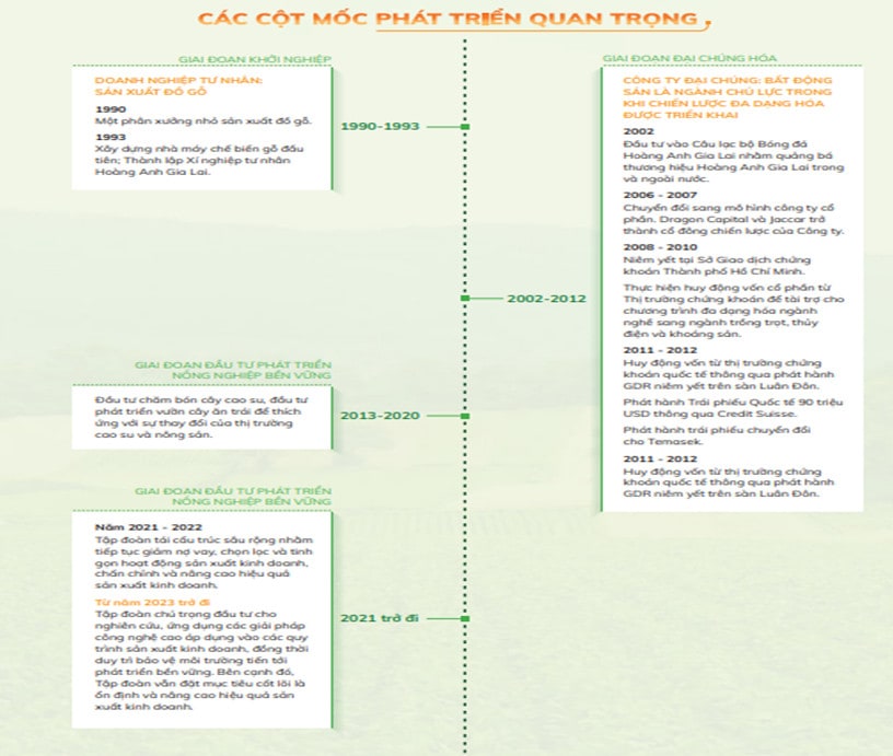 Từ tiền thân là một phân xưởng nhỏ sản xuất gỗ, sau hơn 33 năm không ngừng phát triển. Nay HAGL đã phát triển thành hệ thống bao gồm 11 công ty con, công ty liên kết hoạt động trên địa bàn Việt Nam và cả nước bạn Lào.
