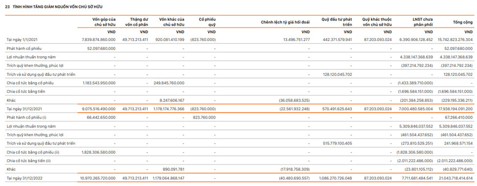 – Công ty trích lập quỹ khen thưởng với số dư tại 31/12/2022 là 90 tỷ đồng.