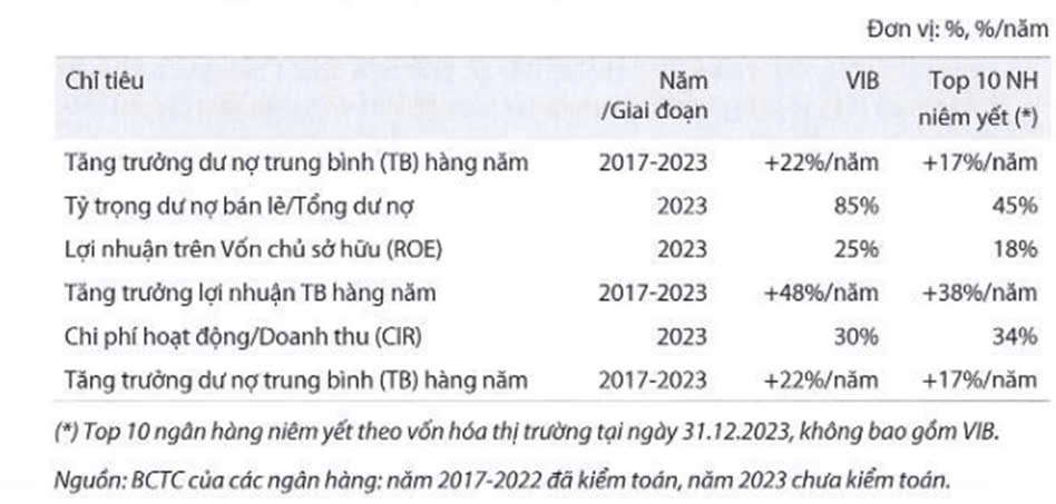 Cuối năm 2023, VIB nhận được kết quả do Ngân hàng Nhà nước xếp hạng ở nhóm cao nhất ngành nhờ hiệu quả kinh doanh cao, an toàn về cả mặt định lượng và định tính. Do đó, VIB cũng thuộc nhóm ngân hàng được cấp hạn mức tăng trưởng tín dụng cho năm 2024 thuộc nhóm cao nhất ngành là 16%.